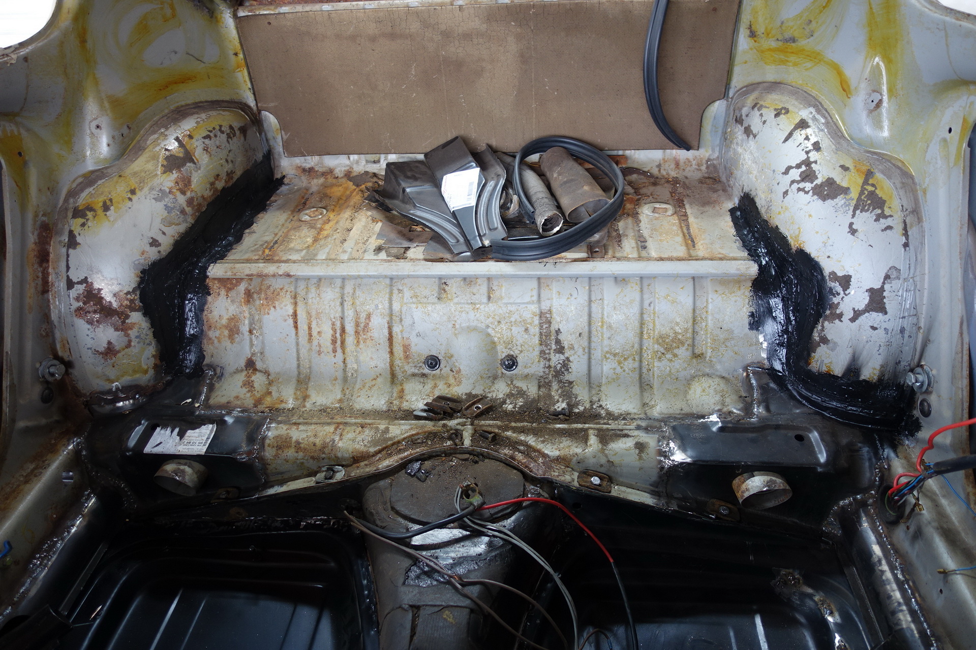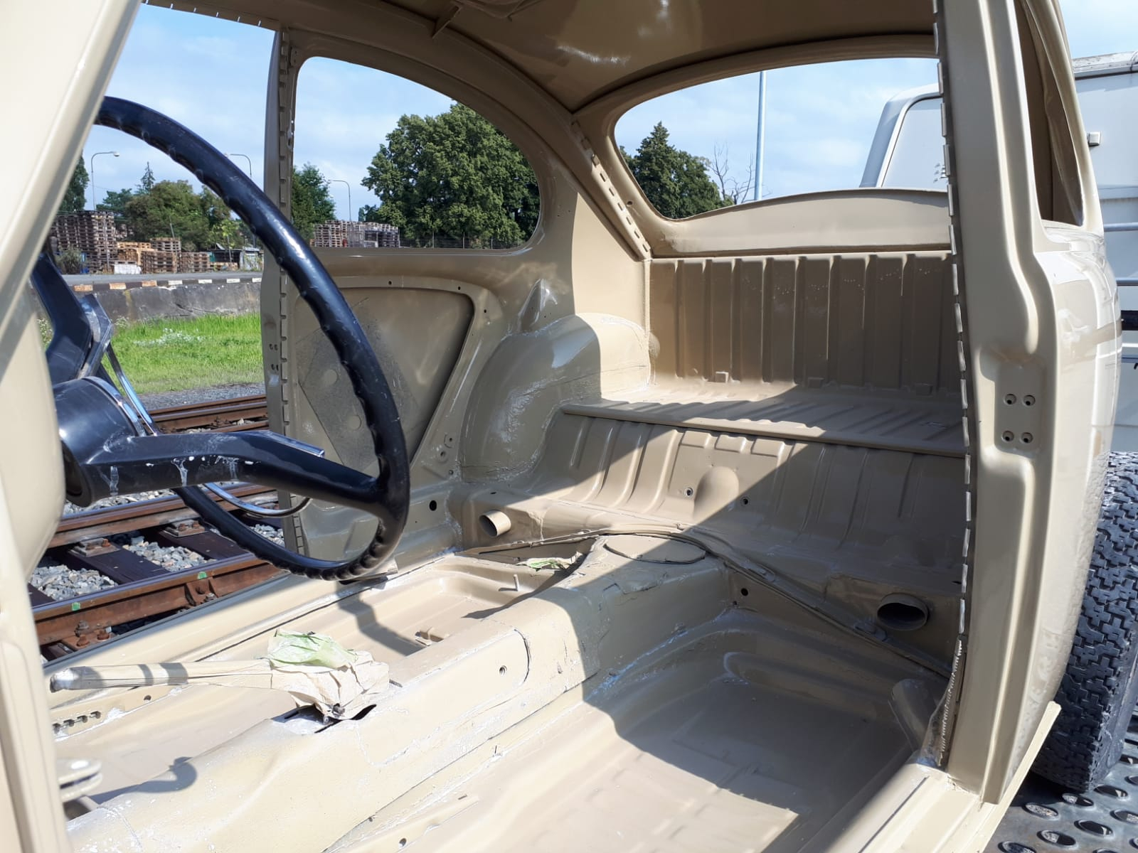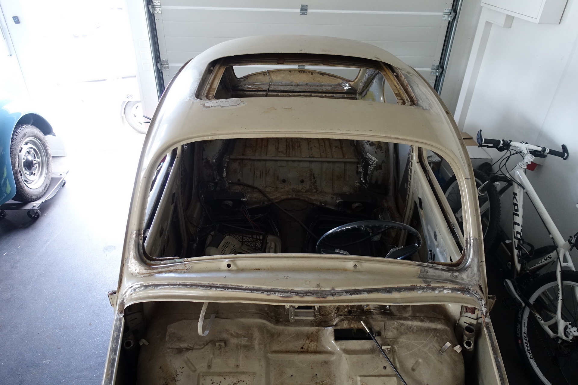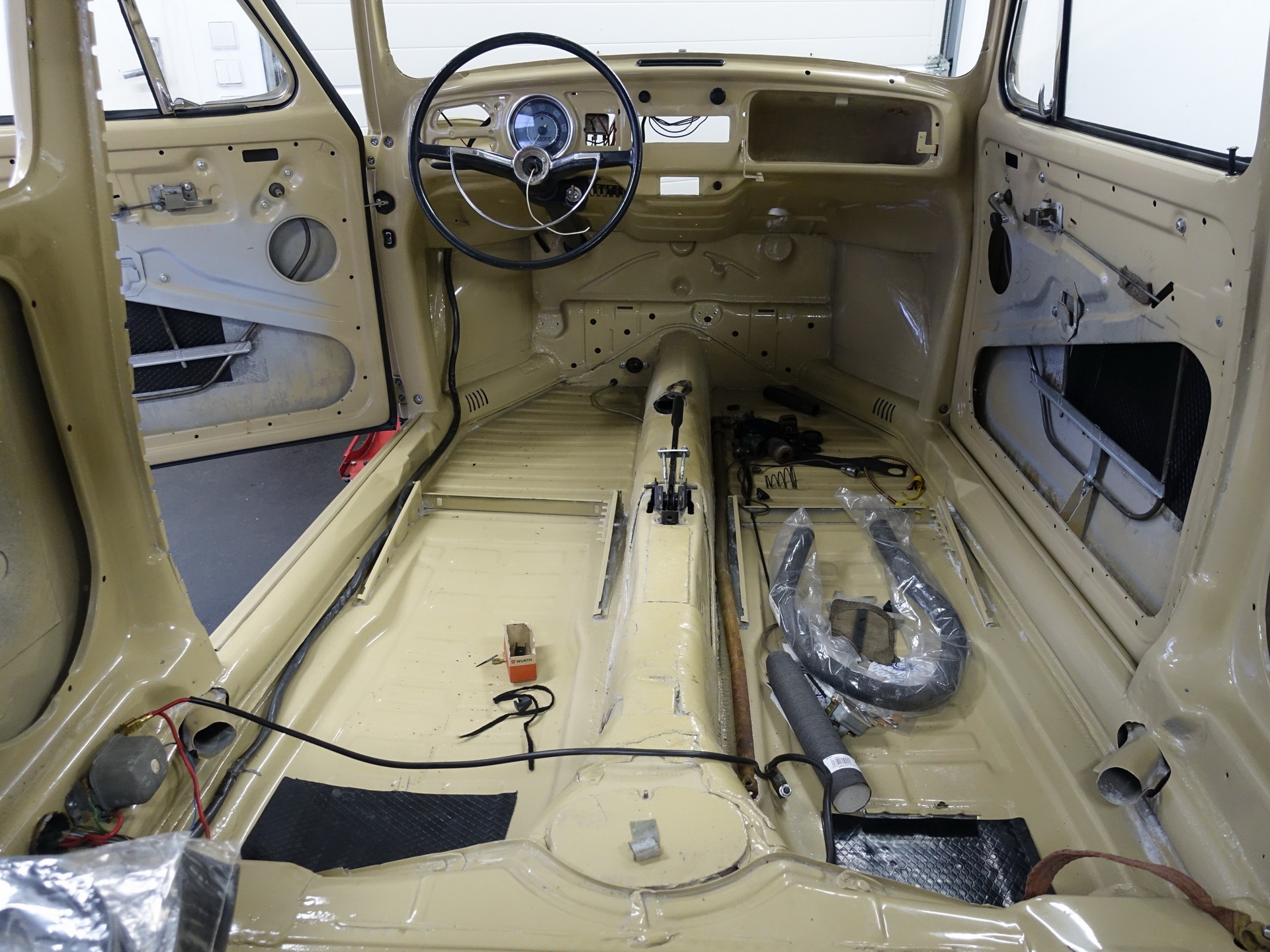 Provedeny karosářské práce. Výměna podlah, prahů. Opravy – zavaření spojů podlah, zadního příčníku, podběhů. Opravy korodovaných částí u střešního okna, rohy u předního i zadního okna, atd. Bylo rozhodnuto o výměně všech blatníků za nové ( B.j. 1967).