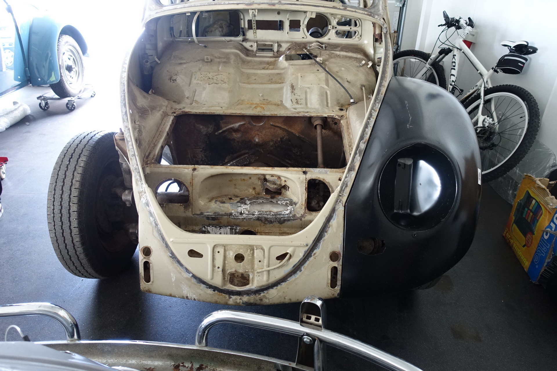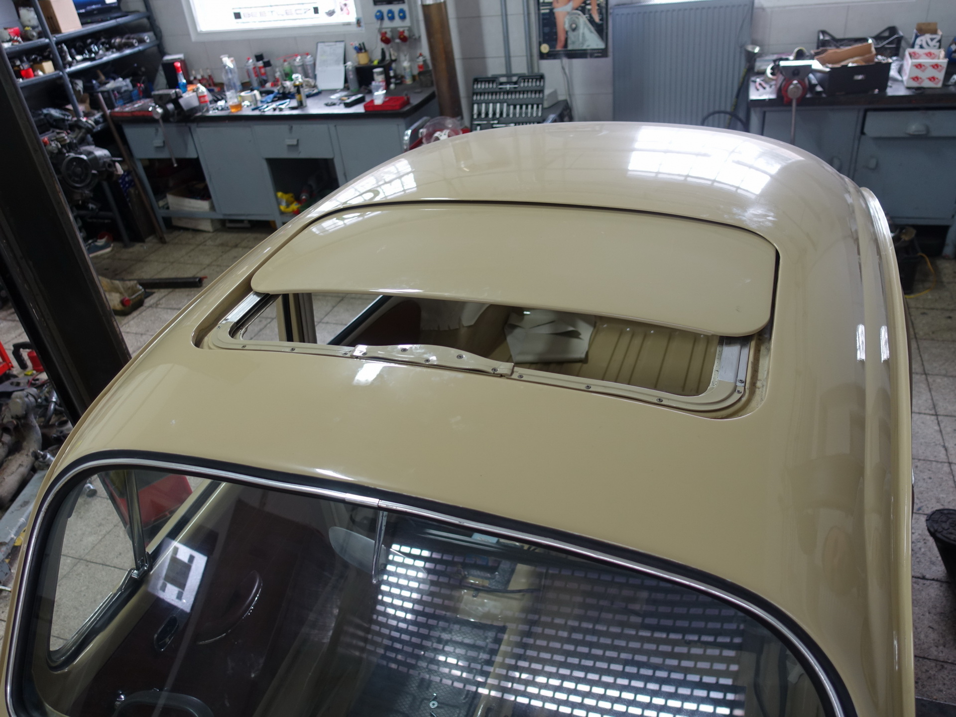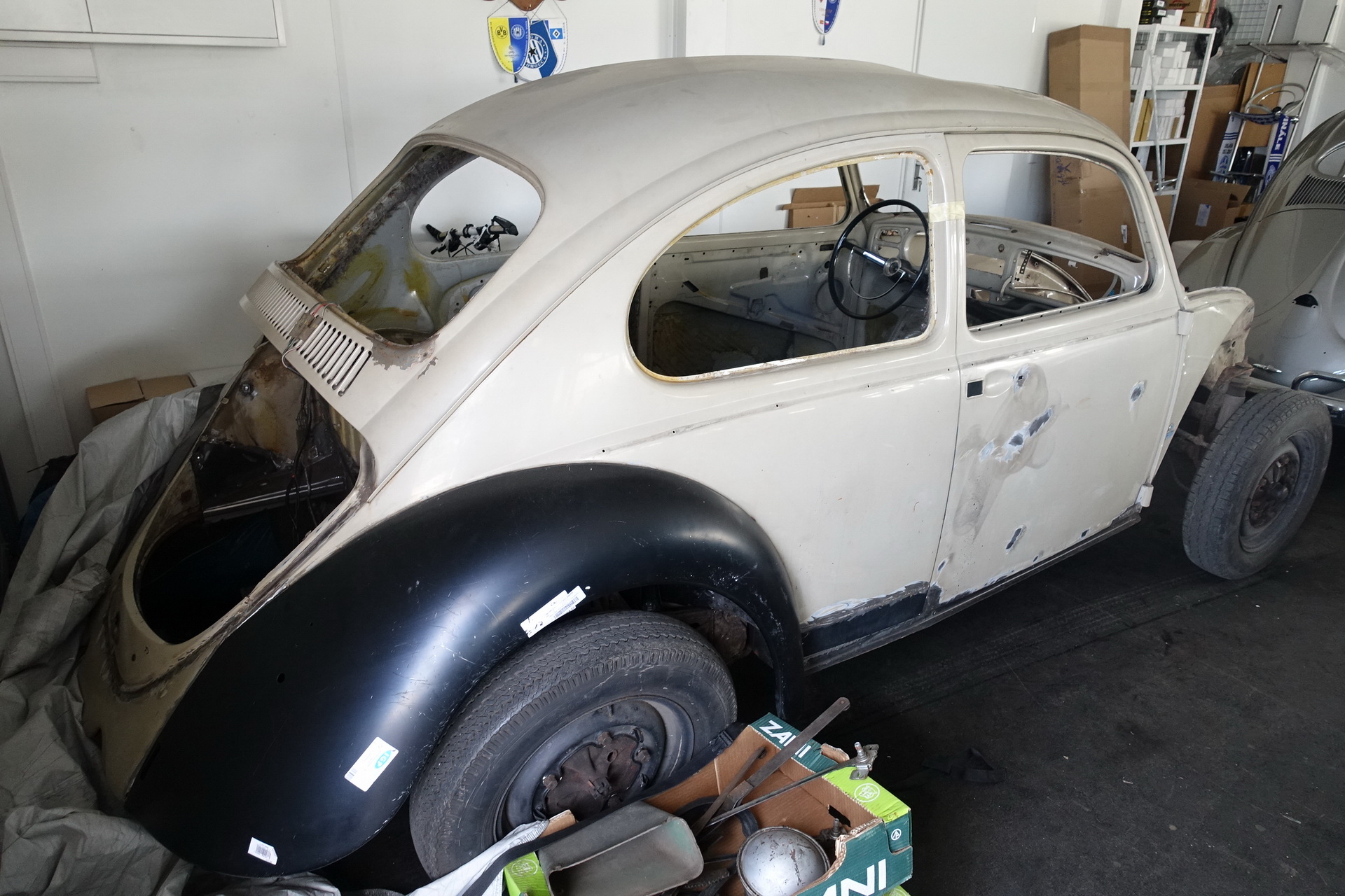 Provedeny karosářské práce. Výměna podlah, prahů. Opravy – zavaření spojů podlah, zadního příčníku, podběhů. Opravy korodovaných částí u střešního okna, rohy u předního i zadního okna, atd. Bylo rozhodnuto o výměně všech blatníků za nové ( B.j. 1967).