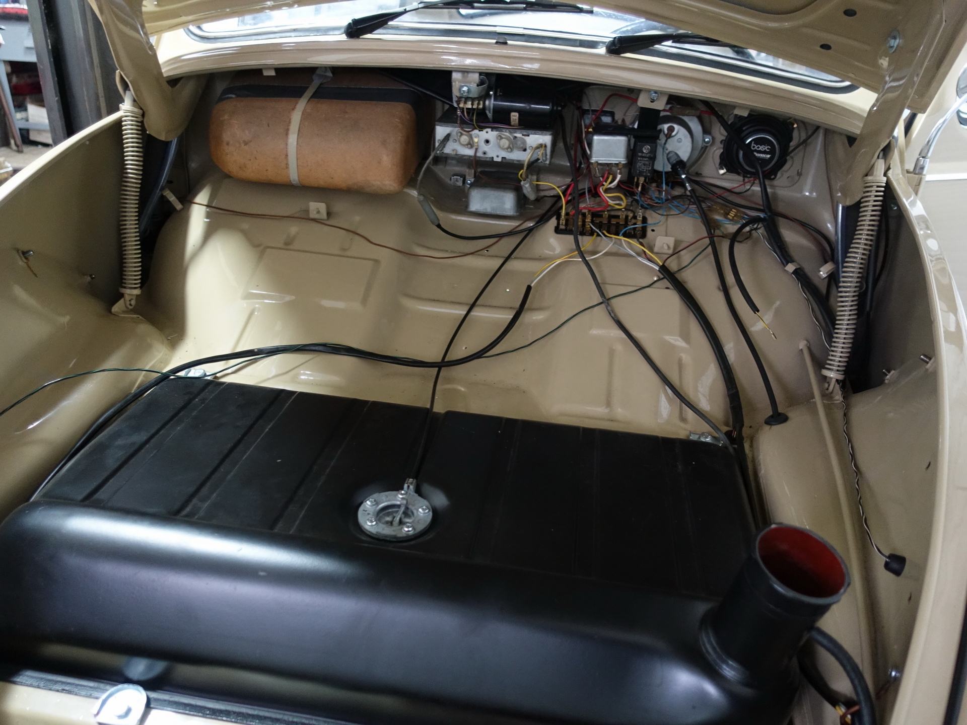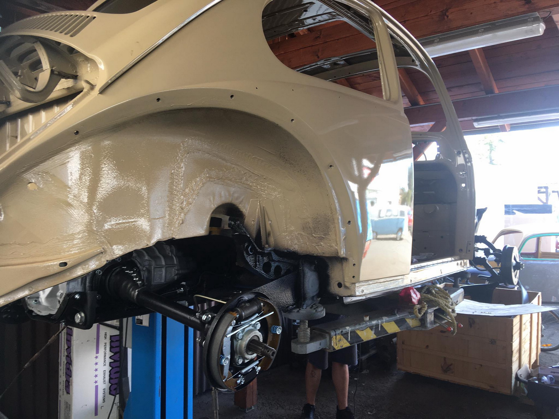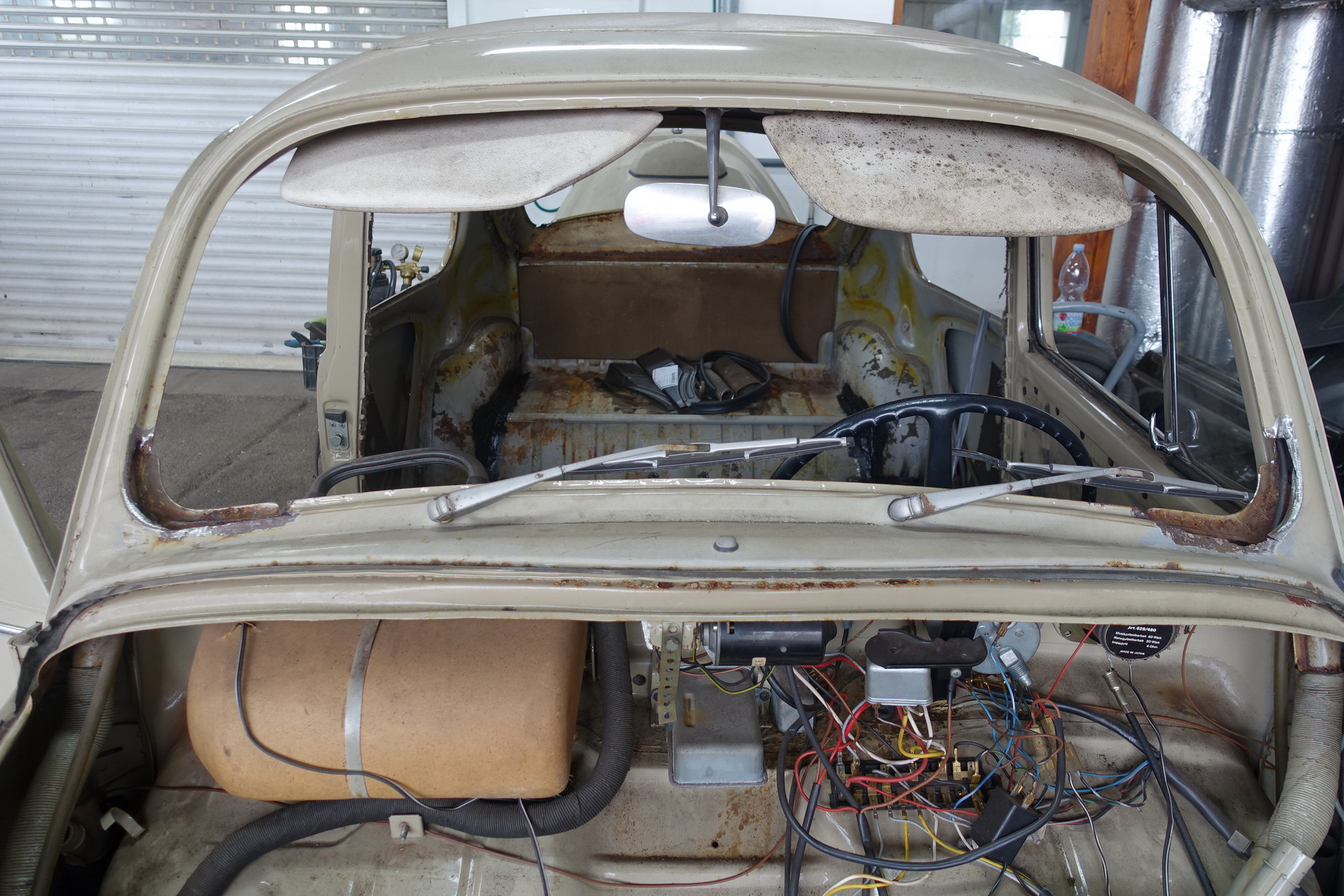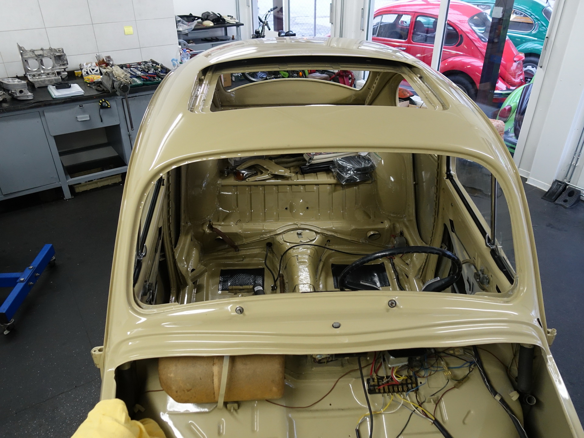 Provedeny karosářské práce. Výměna podlah, prahů. Opravy – zavaření spojů podlah, zadního příčníku, podběhů. Opravy korodovaných částí u střešního okna, rohy u předního i zadního okna, atd. Bylo rozhodnuto o výměně všech blatníků za nové ( B.j. 1967).