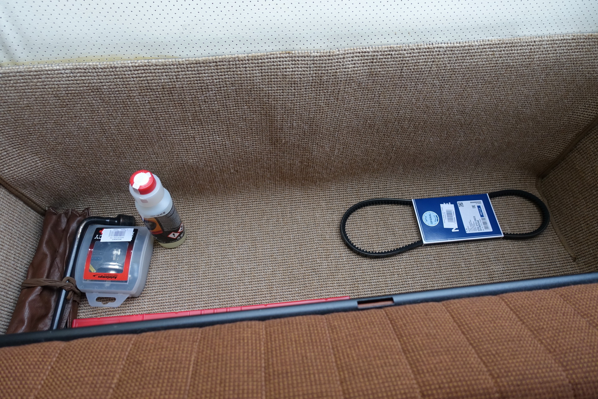 Objednání nových koberců k nalepení do přední a zadní části vozu.