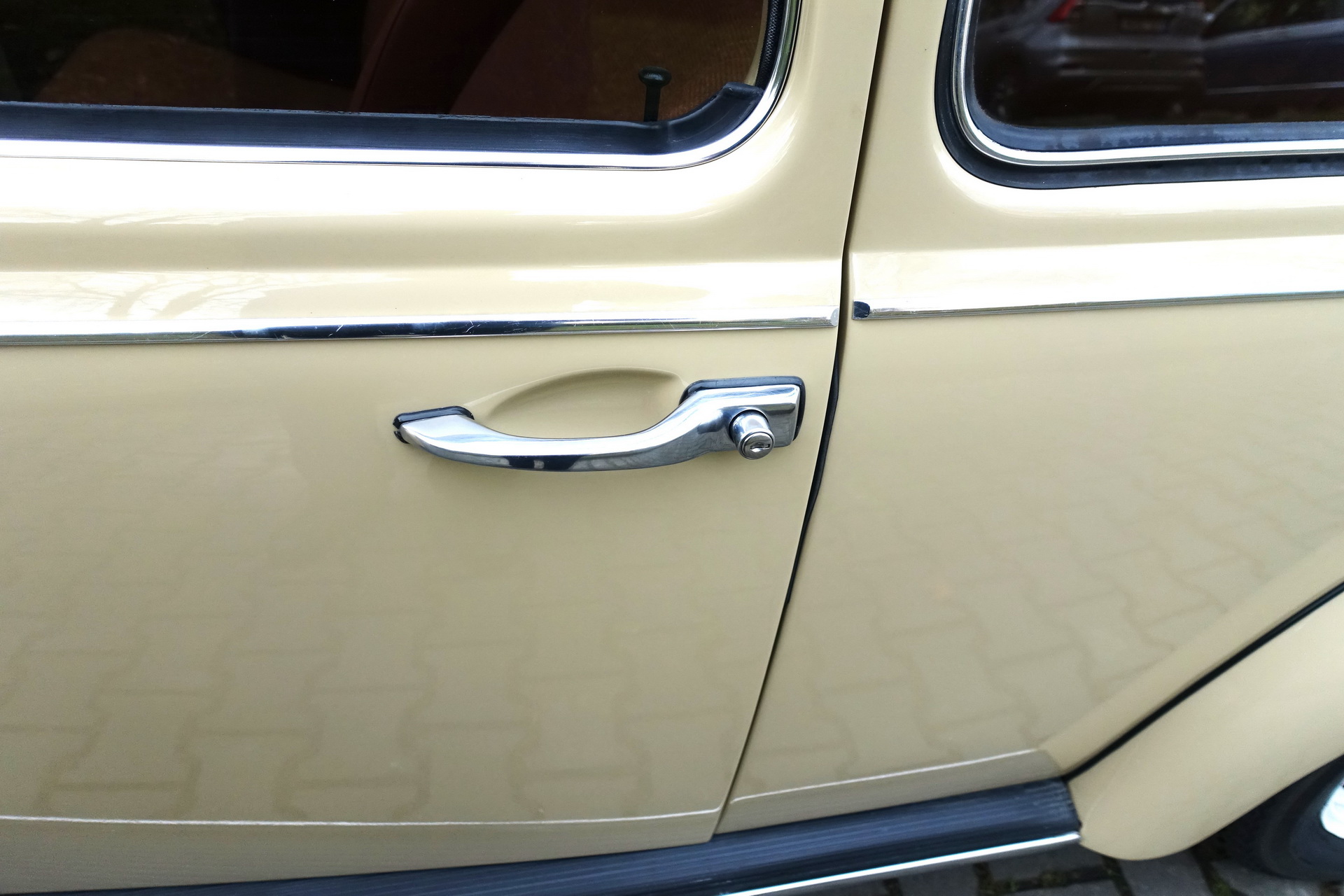 Kliky měly kulaté tlačítko, auto se zamykalo pouze ze strany řidiče. Klíč byl společný i pro zapalování. Klika spolujezdce je tedy bez zámku. Tento typ kliky se vyráběl pouze v M.J. 1967.