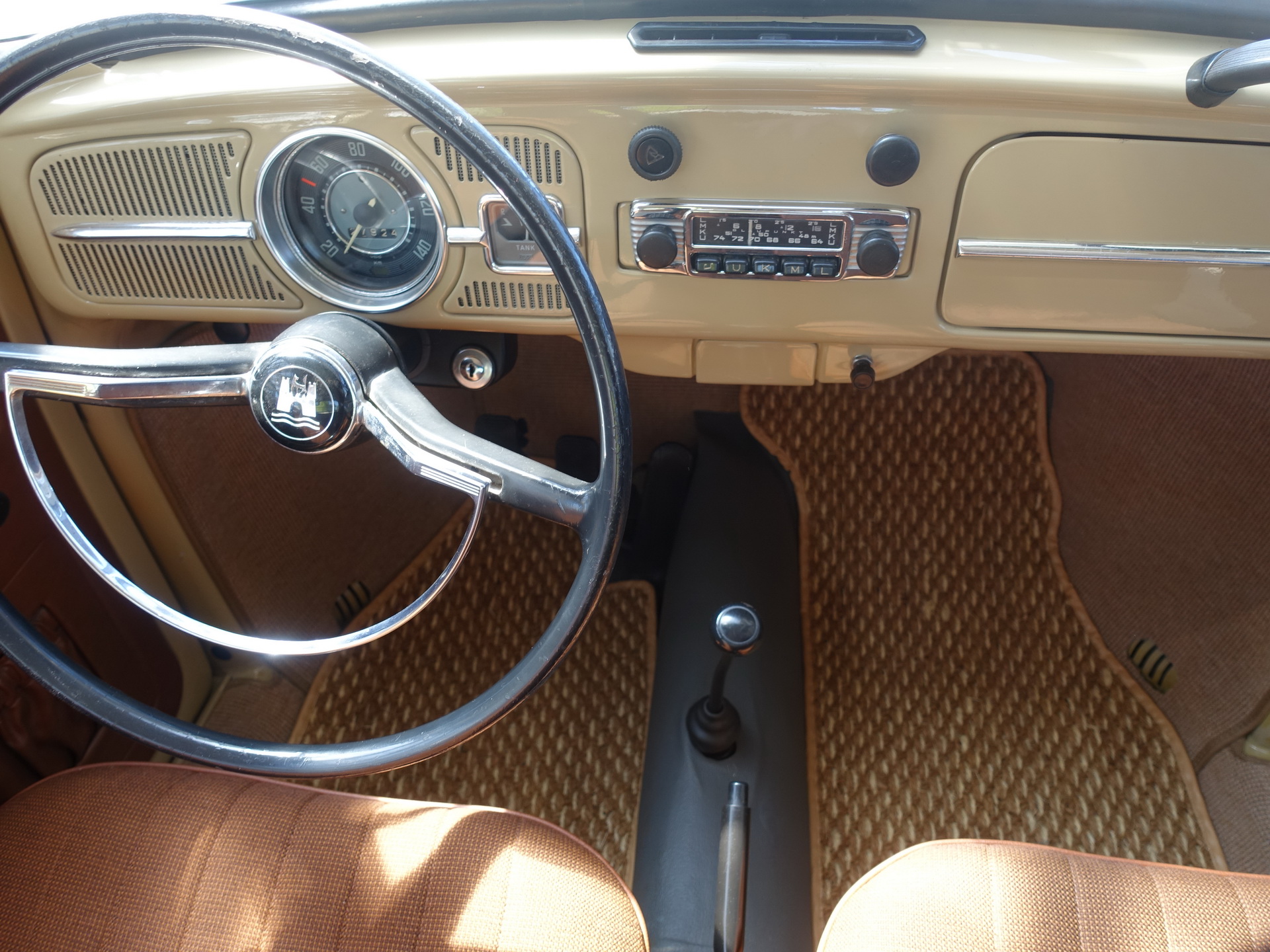 Typově se většinou do Brouka osazovalo rádio EMDEN. Ve voze je však dobové autorádio BLAUPUNKT typ Praha. Bylo to jedno z mála, které se do Československa oficiálně dováželo z Německé spolkové republiky a montovalo do některých sérií automobilů TATRA 603, VW a dalších, především tuzexových vozů. Typ Praha je totožný s typem Frankfurt, vyráběným Blaupunktem v letech 1964–1969. Typ Praha měl východní normu VKV – OIRT. Rozsah dlouhých, středních, krátkých a velmi krátkých vln. Rádio, které mám ve voze, je naše „rodinné" rádio, které bylo zabudováno v našem voze VW 1600 TL, které můj otec koupil v roce 1969. Jednalo se o vozy VW, dovezené do